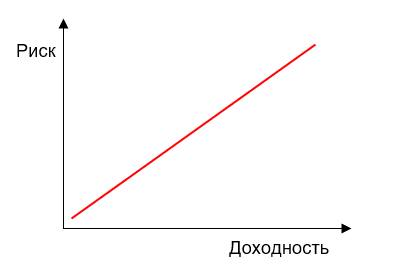 Организации, которые предлагают высокую доходность без рисков, скорее всего, недобросовестны. Доверить им денежные средства будет большой ошибкой. Низкорисковые инструменты более надежны, но они не могут приносить большой доход. Инвестор как бы платит частью потенциальной прибыли за сохранность денежных средств. И наоборот: высокая доходность — это плата инвестору за готовность рискнуть своими денежными средствами. Упрощенно эту взаимозависимость можно показать так:
