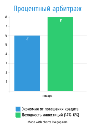 В условиях, когда ставка по депозитам в 2,3 раза выше кредитной ставки, выгоднее будет инвестировать и погашать кредит по графику.