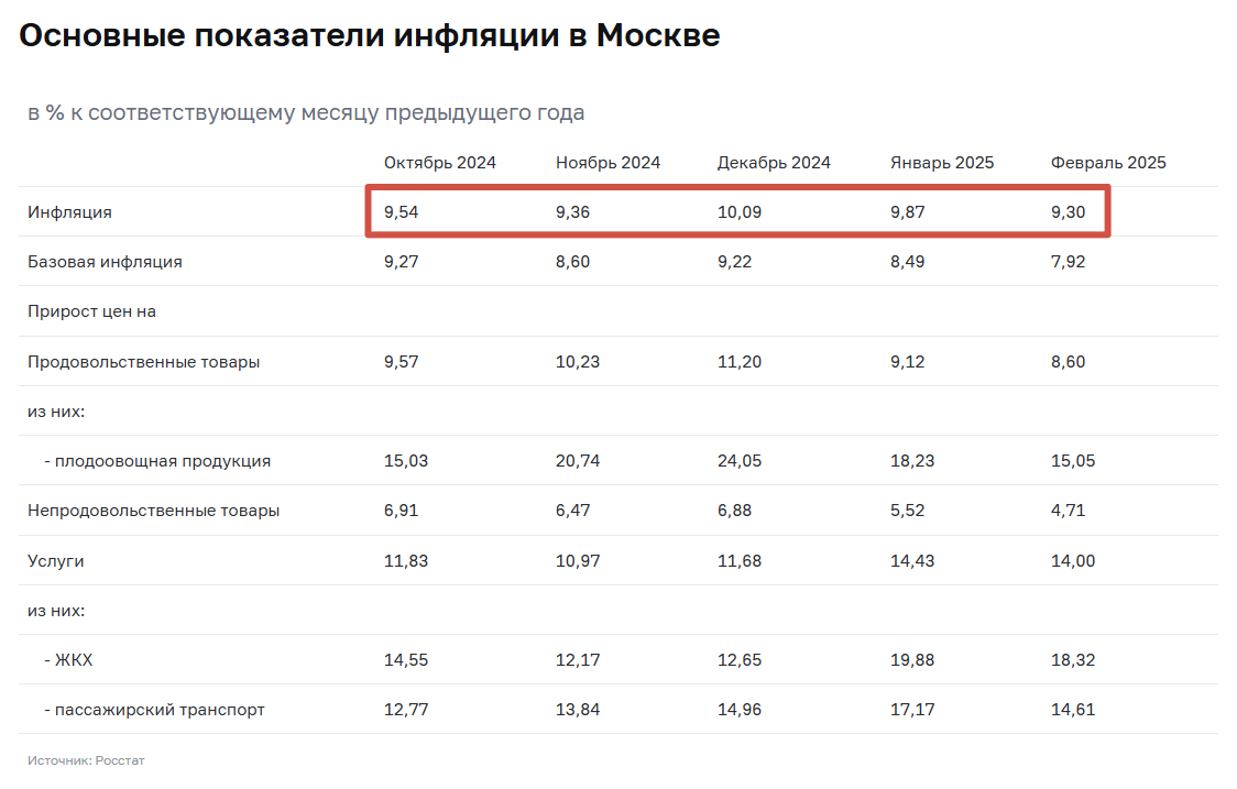 По данным Банка России, в феврале 2025 годовая инфляция в стране увеличилась и составила 10,06%. Не смотря на снижение в Москве на 9,30% и Центральном федеральном округе на 9,92%.