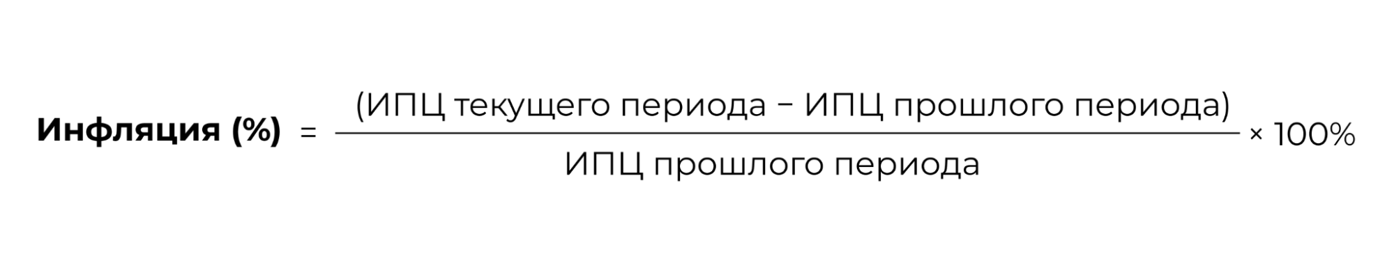 Уровень инфляции рассчитывают с использованием индекса потребительских цен (ИПЦ). Он показывает, как меняется стоимость потребительской корзины — набора товаров и услуг, которые домохозяйства покупают чаще всего. Например: продовольствие, топливо, оплата ЖКУ, одежда, медицинские услуги, образование.