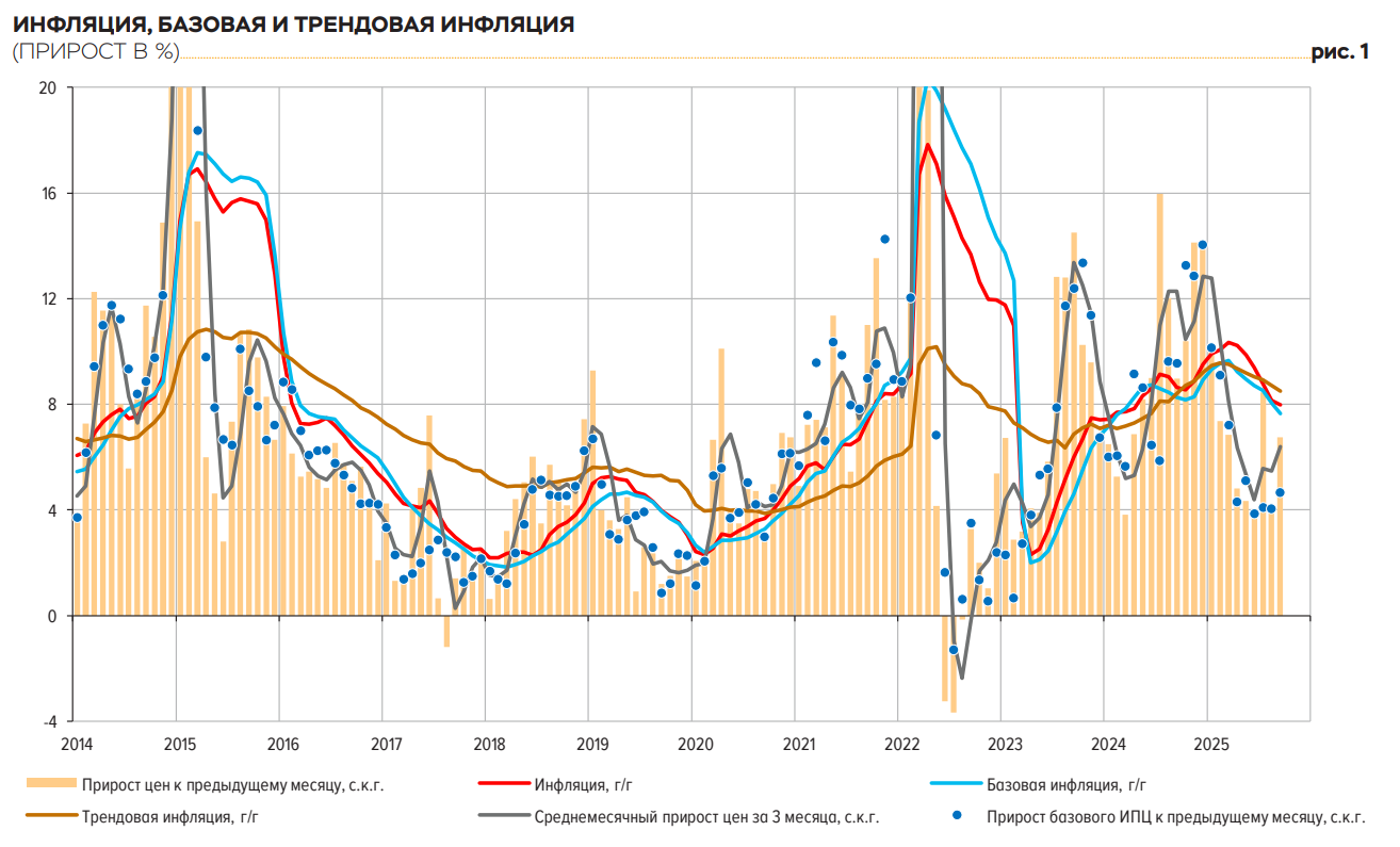 Пример расчета: посчитаем уровень инфляции за период с августа по октябрь 2025 года.